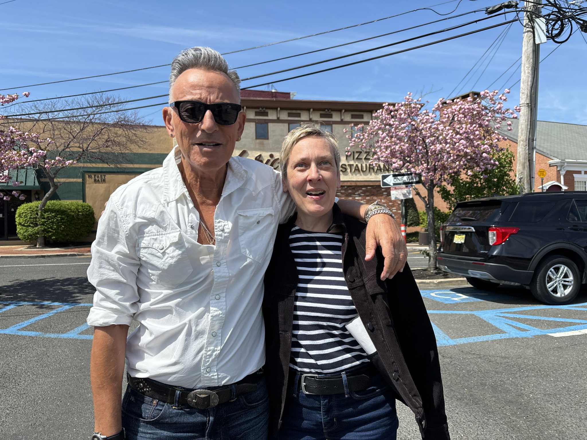 A lucky fan from Paris meets Bruce Springsteen in Freehold on one of our tours in April 2025.